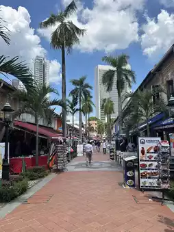 🏘️ This mosque is located in the Arab Street area. Most people come to see the large golden dome visible from afar, which is also a popular photo spot. Around the mosque, there are hip cafes, shops selling Eastern patterned fabrics, and even creative graffiti.