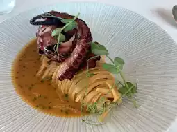 We started with their focaccia topped with San Marzano tomatoes and fresh basil—it was simple but really flavorful, like a little sunny slice of Italy. The octopus and potato salad was fresh and bright, perfect for a light starter.