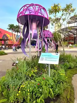 In the newly revamped Resorts World Sentosa, several curiosities popped up. Several Marine creatures' sculptures are seen spread around the area to commemorate the opening of Singapore Oceanarium, an improved version of SEA Aquarium. Giant Clownfishes, Manta Rays, Jellyfishes and the Oceanarium's icon, the Hammerhead shark is on display. They are truly a magnificent sight!