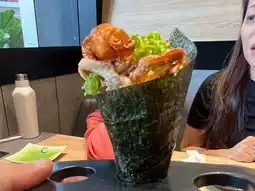 The variety on the menu is solid — everything from sushi and sashimi to grilled items, noodles, and rice bowls. I ordered a small selection of nigiri (the seared salmon was especially buttery), a warm bowl of udon, and some maki rolls to share. The sushi rice was well-seasoned, and the fish tasted fresh — not mind-blowing, but definitely above average for a mall restaurant.