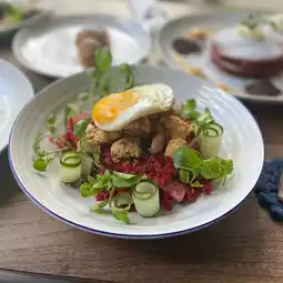 The papaya bowl is so fresh and actually served in half a papaya. We stopped by here several times for drinks and catchup, the Long Black proved to be a solid choice, providing a good kick to start the day. Lovely plating of the dishes. The staff seemed to know the dishes well.