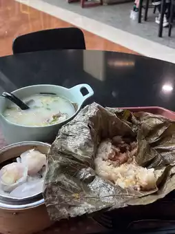 - Sticky rice and pork wrapped in leaves🍖