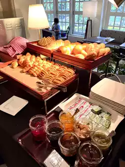 Breakfast is served at the coffee lounge, offering a wide range of dishes from Western to Asian cuisine, with quality and taste highly praised by guests.