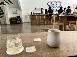 The shop has a minimal, warm atmosphere filled with care — from the details of the cups to the seating area — making every visit a stylish moment of relaxation.