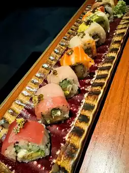 Inside The Shoppes at Marina Bay Sands, KOMA Singapore offers more than just a meal it’s an experience. Guests enter through a striking walkway of orange arches, leading to a grand dining hall with a towering Japanese bell, wooden bridge, and soaring ceilings. The menu blends traditional Japanese flavors with modern twists, from fresh sashimi and delicate makis to indulgent wagyu and lobster dishes. Every plate is crafted with artful presentation, making each bite as pleasing to the eyes as it is to the palate. With its stunning ambiance and flavorful creations, KOMA is the perfect spot for a memorable dining escape right in the heart of Singapore.