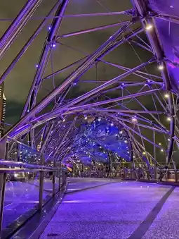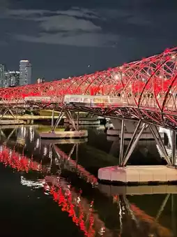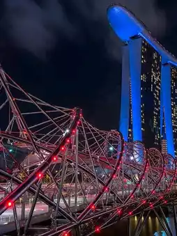 The Helix Bridge is a stunning pedestrian bridge shaped like a DNA double helix 🧬, connecting Marina Centre to Marina Bay Sands. By day, it’s an architectural beauty 🏗️, and by night, it glows with colorful LED lights, creating a magical walkway 🌃💖.