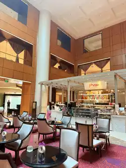 This time in Singapore, I stayed at the Marriott Singapore Tang Plaza, a hotel with an octagonal shape that's the most visible landmark in the Orchard area. It's truly a superb location! From Orchard MRT Station, take Exit 1 and you'll find the hotel right there. The hotel's ground floor is the TANG shopping mall. The entrance is private, and the lobby is magnificent. Check-in was quick. I got a room on the 23rd floor with a king-size bed, a work desk, a TV, a refrigerator, a large wardrobe, and an iron, which I really liked. The bathroom was comfortable and the shower had great pressure. The best part is that every room has a view. The breakfast didn't disappoint. The food was plentiful and very good. I was very impressed with this hotel. It was truly worth every penny.