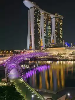Rising majestically in the heart of Singapore, Marina Bay Sands is a futuristic and elegant architectural marvel. The three towering structures are crowned by the "Sands SkyPark," resembling a ship floating in the sky. Its breathtaking design leaves everyone in awe at first sight.