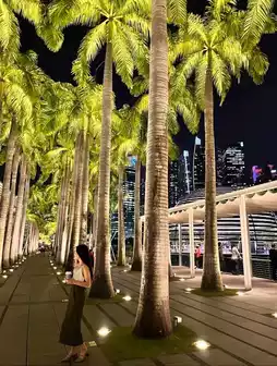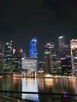 At night, the spectacular fountain show and the Singapore skyline combined to create a breathtaking nightscape.