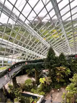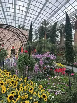 This greenhouse showcases a variety of flowers and plants from around the world, making it a perfect photo spot.