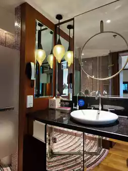 Stayed one night at Sofitel Sentosa. Although not directly on the beach, the resort has easy access to Tanjung Beach. It spans 27 acres filled with ponds and diverse flora and fauna. The resort is pet-friendly, with many peacocks freely wandering the grounds. The room was clean and well-decorated; my 305 suite featured separate living and sleeping areas. The bathroom had dual sinks, a WC, a separate shower, and a bathtub, with fantastic water pressure. Dining is pricey, but a 30% discount is offered to guests. The food is decent, not exceptional. Breakfast at Kwee Zeen was adequate for a five-star resort, but not outstanding. I appreciated the tranquility, relaxing environment, and overall peacefulness.