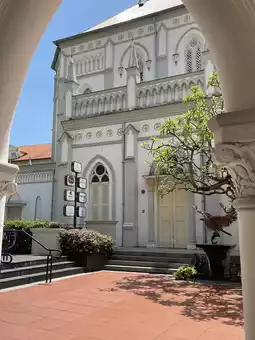 Located in the heart of Singapore, Chijmes Cathedral is a representative tourist attraction, designed with Gothic influences. Today, it's a popular wedding venue, and the Chijmes complex offers a variety of restaurants, cafes, and other dining options. It's open 24 hours a day, allowing you to stroll, enjoy brunch, or simply relax in the bright atmosphere during the day. At night, the cathedral illuminated with lights and the night view adds to the grandeur. Don't forget that Chijmes Cathedral offers many beautiful photo spots, making for some truly memorable shots! #SingaporeTravel #Chijmes #PhotogenicPlaces #TouristAttractions