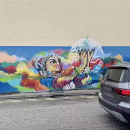 The colorful buildings and art create a different exotic atmosphere than Arab Street. 🇮🇳
