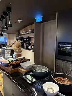 The lounge itself is spacious, elegant, and super comfortable—perfect for both winding down or pretending you’re doing “serious work” with a glass of wine in hand. The evening cocktails and canapés feel more like a curated dining experience than a typical lounge spread, and the service is warm without being over the top.