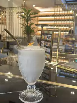 The interior was a dazzling gold. ✨🤣 Surprisingly, it was a durian cafe.