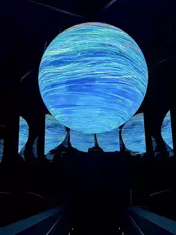 The projections and soundscapes are beautiful. Midway down, there’s a suspended LED globe that lights up with centuries of maritime routes, almost like watching Singapore’s place in the world unfold before your eyes. At the base, you walk past a digital waterfall that parts when you step closer, with ripples spreading across the floor under your feet.