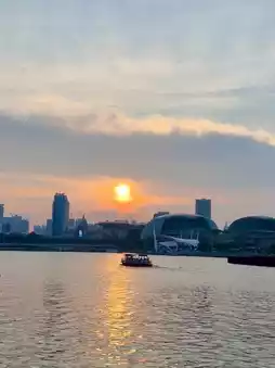 Standing at the plaza of the Marina Bay Sands Hotel shopping mall, gazing at the buildings along the Singapore River and the river cruise illuminated by the evening glow, was an enchanting experience—so stunning it felt almost surreal.