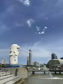 A visit to Singapore wouldn’t be complete without exploring Merlion Park, home to the city’s iconic half-lion, half-fish statue 🦁🐟. Situated by the picturesque Marina Bay waterfront 🌊, the Merlion represents Singapore’s beginnings as a fishing village (“mer”) and its original name, Singapura 🐯, meaning “Lion City.”