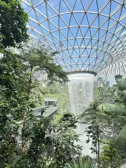 A magical space that won't seem like an airport! The Rain Vortex, one of the world's largest indoor waterfalls, changes appearance during the day with natural light and at night with a light show. With plenty of shopping, dining, and photo opportunities, you'll never get bored during your transit. Directly connected to the MRT "Changi Airport" station, this is a must-visit spot at the beginning or end of your trip.