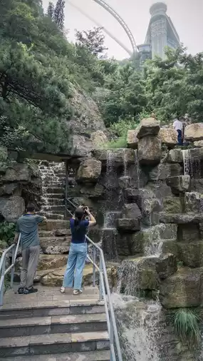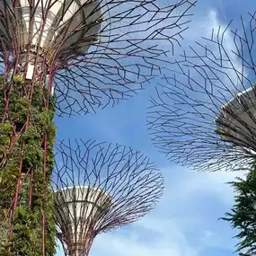 Supertree Grove, a giant steel tree 25-50 meters high, features a free Garden Rhapsody light show at night.