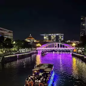 After the show, stroll along the bay to Marina Bay Sands or the Helix Bridge for nighttime photos of the city lights.