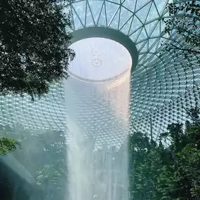 HSBC RAIN VORTEX: The world's tallest indoor waterfall, reaching 40 meters in height, is the number one highlight of Jewel Changi Airport.