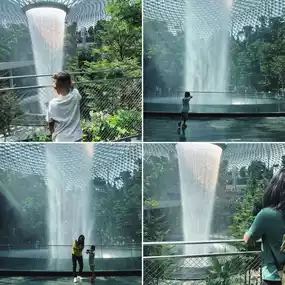 It's truly beautiful, grand, modern, and spectacular. Every photo is stunning and impressive. I highly recommend it to anyone visiting Singapore. Don't miss it! As you approach, you can actually hear the waterfall, making you feel like you're in nature. It's amazing! And if you're nearby, you can even hear the mist.