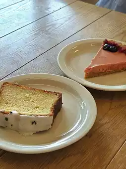 The raspberry tart is refreshing and sweet, and the lemon pound cake is fluffy and refreshing.