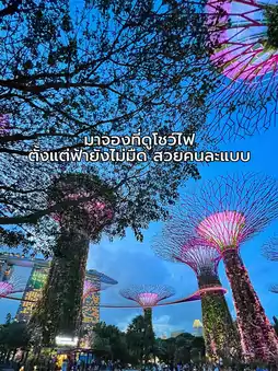 #VisitSingapore When in Singapore, you can't miss Gardens By The Bay, a signature attraction. There are both paid and free admission zones, but Supertree Grove is a free spot. You can take photos, check in, or watch the light show. It's absolutely stunning! The 15-minute show features Chinese and Western songs, depending on the theme of the day. The Supertree Grove lights are on before sunset, and the sky is beautifully lit. There are food and drink vendors nearby, so you can grab a seat and relax.