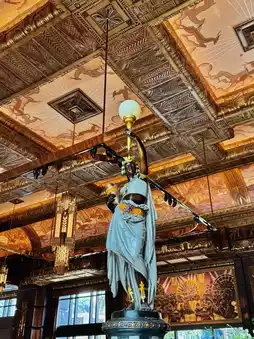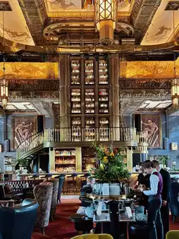 The restaurant features stunning Art Deco decor, exuding a luxurious and opulent vibe. It was even a filming location for the movie 'The Great Gatsby.'