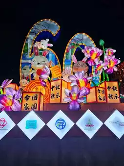 Centrepiece An 8‑metre tall installation featuring the number 60, flanked by rabbits, mooncakes, orchids and lanterns.