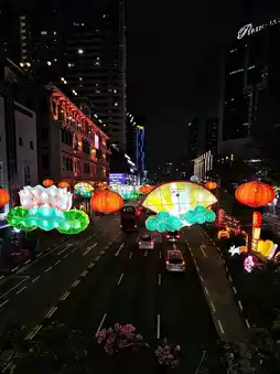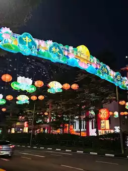 Street Light‑Ups / Lantern Displays Major streets like New Bridge Road, Eu Tong Sen Street, South Bridge Road, Upper Cross Street will be lit with overhanging lanterns, sculptures, installations. There will be lotus flowers, fans, jade pendants, golden full moon motifs, glow‑in‑the‑night Chang’e scenes, rabbits, mooncakes, orchids.