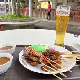 Gardens by the Bay, a magnificent indoor forest, and a huge artificial mangrove forest outside, where a light show takes place every evening. Enjoy delicious satay, rice, and beer at Satay by the Bay.