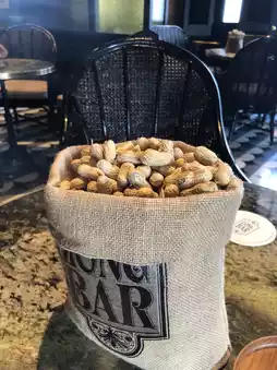 A pile of peanuts was placed on the table, and it's traditional to drop the shells on the floor. Every time someone walked, a crisp sound echoed, creating a unique atmosphere that can only be experienced here.
