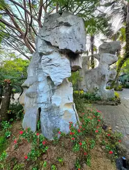 Among the rugged, unique and imposing rock formations of The Canyon, a striking dragon sculpture emerges, blending myth with nature. Its winding body seems to rise from the stone itself, as if alive and guarding the landscape. The interplay of textures, the rough rock against the sculpture’s flowing form, creates a scene both powerful and enchanting. Walking past, you feel as though you’ve stepped into a legend, where art and geology breathe life into ancient tales.