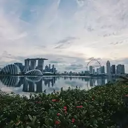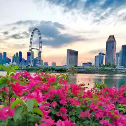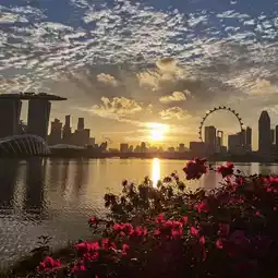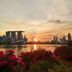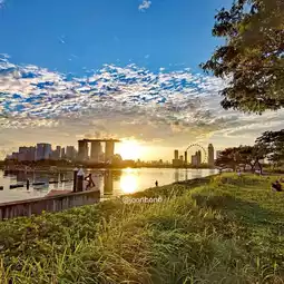 This spot is the best to see the sun goes down with the backdrop of the Singapore skyline and Singapore's famous landmark, such as The two domes of Garden by the Bay, Marina Bay Sands, Singapore Flyer and Suntec City towers.