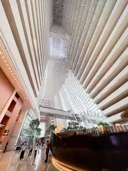 The Marina Bay Sands is nothing short of an architectural marvel, especially with its iconic cantilever platform where the infinity pool and many restaurants are! Its curved towers not only appear pleasing to the eye from the outside, they also create a very unique interior of slanted ceilings, almost like a visual illusion of sorts.
