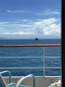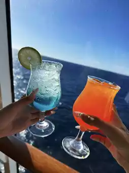 We booked a balcony stateroom, which I highly recommend. You can enjoy the sea view, dry swimsuits in the sun, and even get a welcome drink (adults can choose wine or cocktails, kids can take soft drinks).