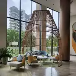 Jewel is a stunning shopping mall connected to Singapore's Changi Airport. Designed as a large glass dome, it exudes modernity and luxury. Its most striking feature is the HSBC Rain Vortex, a 40-meter indoor waterfall, the world's tallest. Located in the center of the building, it's surrounded by the Shiseido Forest Valley, a lush green garden, creating an urban forest-like atmosphere.