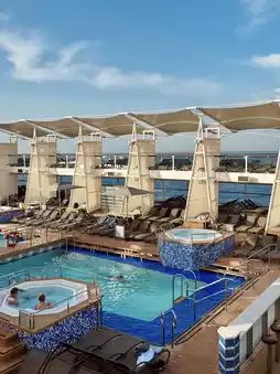 ⚪️ Evening theater shows were free and top-notch, with performers from Broadway, West End, or Las Vegas 🎭.
