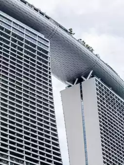 Singapore's landmark integrated resort! Three 57-story skyscrapers support the world-famous SkyPark pool, which encompasses a shopping canal, the ArtScience Museum, and a state-of-the-art casino. At night, a laser water show illuminates Marina Bay.