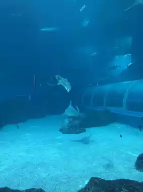 Once you enter, you will see this super shocking photo spot, the transparent viewing window is 36 meters wide and 4 meters high, thousands of marine life swim with you. A fantastic scene composed of sharks, rays, and various tropical fish, perfect for taking pictures or shooting short videos.