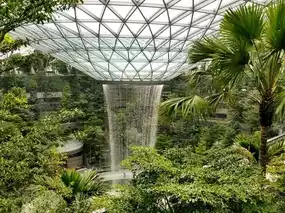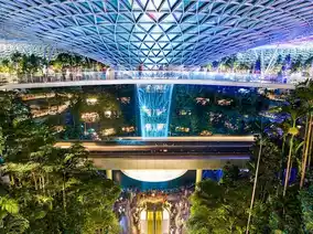 Considered one of the world's best airports, Jewel Changi Airport is more than just a terminal; it's a destination in itself. The 40-meter-tall artificial waterfall, the Rain Vortex, is at its center, surrounded by forests, sky gardens, shopping malls, and restaurants. It's a perfect way to experience Singapore's sophisticated aesthetic before leaving the airport.