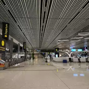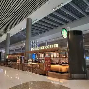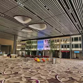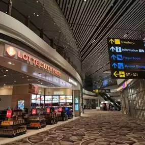 Even in the early hours of the morning, there are still duty-free shops and restaurants open inside.