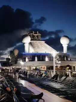 Evenings were my favorite time 🌅. I’d dress up and go to the main dining hall for a fancy dinner — the steak and lobster were absolutely delicious. Afterward, I watched a musical show at the Royal Theatre, full of lights and live singing that felt just like Broadway. 🎭