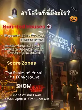 My first experience of entering a national haunted house. Very exciting, extremely thrilling and a bit scary because I went alone. Many people might think it's strange, really strange, going to a Halloween festival in a foreign country alone, who else does that? (Me, lol.) But I really wanted to go. It's hard to find someone who likes to do risky things like us, play the most terrifying rides, explore the world of horror. Eww. But at that time, I didn't think anything, I just wanted to go, I had to go. If I had to wait for someone to have fun, I probably wouldn't be doing anything in this life. So, let's go!!!! Go to Singapore to the Halloween Horror Nights Singapore 2025 (the 13th edition). It is an event held at Universal Studios Singapore, where they have many activities with a Halloween theme and you can also play some of the rides inside. The main activities are haunted houses with different themes, such as Singapore's Most Haunted: Build to Horror, a haunted house based on a Singaporean horror story, or a haunted house based on the Thai movie Death Whisperer, a haunted house themed on Stranger Things, and The Unruly Immortals, a haunted house based on a Chinese novel. There are also Outdoor scare zones like The Realm of Yokai and The FEARground, as well as thrilling live shows like Dare or Die Live! and Once Upon a Time... to Die, are both scary and fun, like a rock party. A wide variety of drinks are also available. It's both scary and fun, and you'll definitely be back!