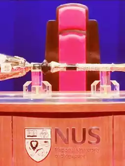 The FASS Courtyard: A serene oasis with reflecting pools, frangipani trees and open-air discussion spaces under rhythmic ceiling fans
