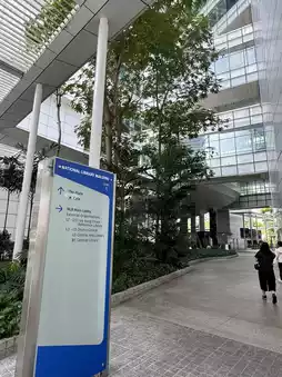 The National Library of Singapore is located on Middle Road, surrounded by modern glass buildings.