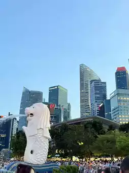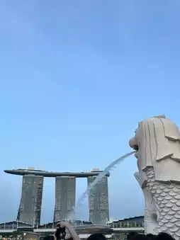 - The 8.6-meter-tall statue with a lion's head and fish's body stands majestically at Marina Bay.