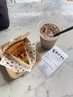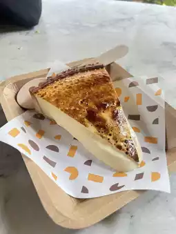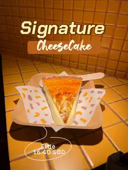 I ordered the Signature Cheesecake, one slice for SGD 16.40. It's a bit pricey, but it's delicious! I think it's worth it. I recommend everyone to try it. The flavor is sweet, creamy, and a little salty. There's a liquid part and a less liquid part. I think this part has a better texture. The liquid part might be a bit too rich, but the crunchiness of the tart goes well with it. It's so smooth. Go try it!